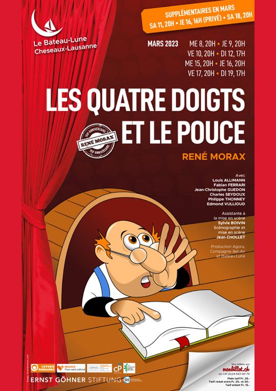 Écrite à la demande des machinistes du théâtre du Casino à Morges, Les quatre doigts et le pouce est rapidement devenu un classique du théâtre romand.