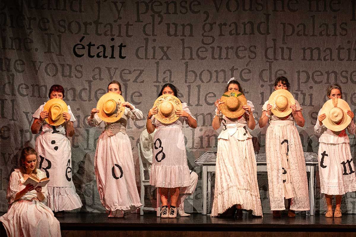 Alors que tout commence comme dans les récits de notre enfance, un choix musical détonnant et des hits détournés des années ’90 viennent bousculer le conte traditionnel. Pris dans le jeu des apparences, les personnages du conte emmêlent les fils de l’histoire. Et si la fin n’était pas celle qu’on attend ?
