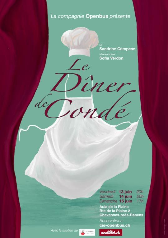 Animés d’un profond désir de créer un projet théâtral de A à Z sous la conduite d’une metteur en scène professionnelle, Sofia Verdon, la troupe avait envie de montrer une pièce comique ayant du style, avec une dimension dramatique, pour 7 personnes et correspondant aux goûts de chacun, bref la quête de la perle rare était lancée ! Et tadamm’ le précieux a été trouvé : Le Dîner de Condé écrit par Sandrine Campese en 2023. Une pièce qui réunit tous les critères et qui promet des moments riches en émotions et en rire.