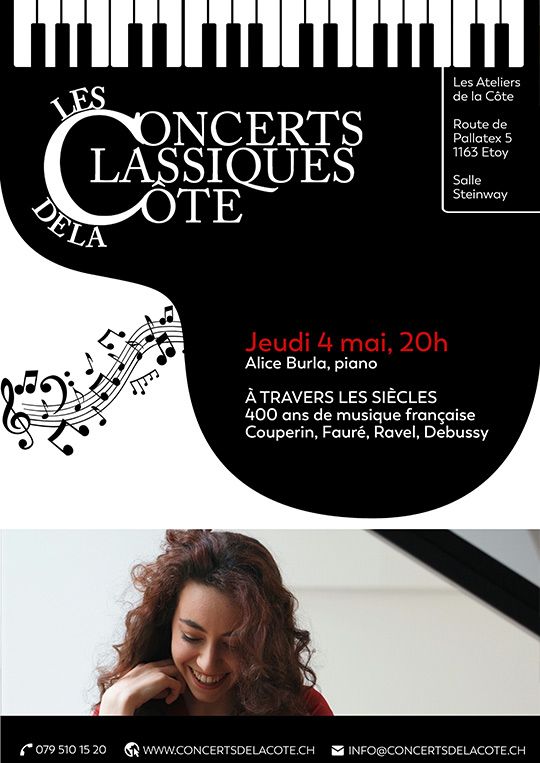 Les Concerts Classiques de la Côte proposent 6 concerts de janvier à juin dans la Salle Steinway des Ateliers de la Côte à Etoy : des récitals de piano et de la musique de chambre tous les premiers jeudis du mois !