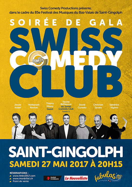 Découvrez Le Comedy Club Made in Switzerland avec les stars du rire façon stand up, et seront à votre merci pendant 1h30 sans entracte pour respirer ! Ils auront le plaisir de vous présenter leurs collections de vannes 2016-2017. Adeptes de l’humour de proximité, leurs styles décapants ne vous laisseront certainement pas insensibles ! Adoptez une marque réputée dernier rire et participez aux shows du Swiss Comedy Club & Friends.