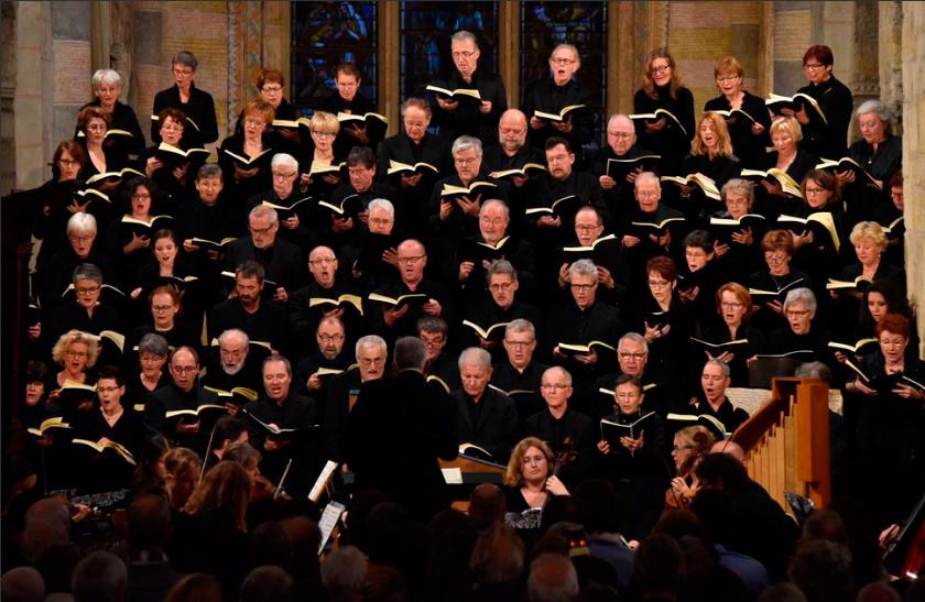 En première partie, trois motets de Mendelssohn a cappella : psaume 43 op. 78 no 2 « Richte mich, Gott », motet op. 69 no 1 « Herr, nun lässest du deinen Diener in Frieden fahren » et motet op. 69 no 3 « Mein Herz erhebet Gott, den Herrn ». En seconde partie, la messe de Franz Schubert en La bémol majeur D. 678, pour chœur, orchestre et solistes.