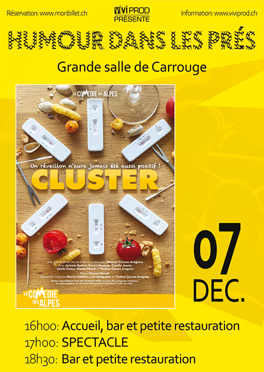 ViviProd présente Cluster dans le cadre de la saison d’Humour dans les Prés 2025-2026.