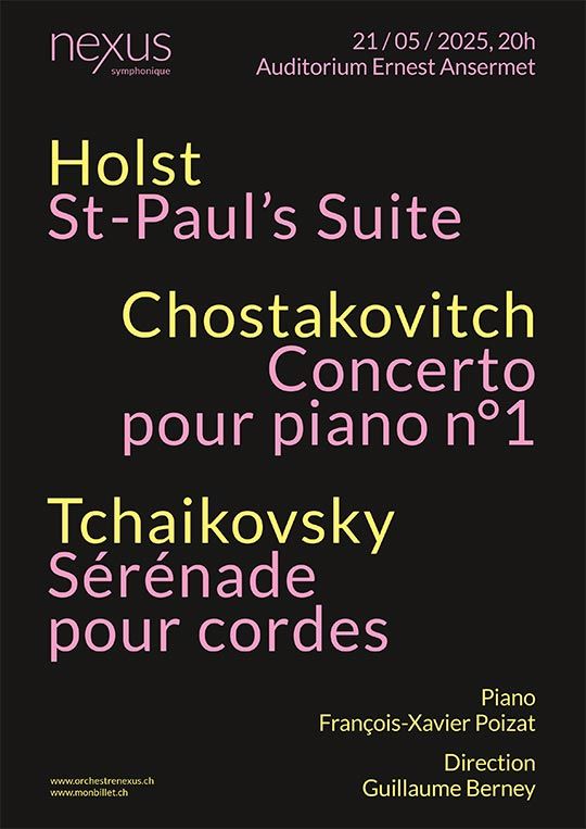 Une fois n’est pas coutume, l’Orchestre Nexus a choisi de mettre en avant son effectif de cordes dans un programme romantico-moderne. Au-delà de la qualité incontestable des œuvres programmées, c’est aussi une occasion unique pour les pupitres concernés de travailler ensemble et en profondeur la sonorité, les réflexes et l’articulation, afin de consolider l’identité sonore et l’esprit de corps de la phalange. Durant cette série, les musiciens de l’orchestre seront encadrés dans leur travail par des instrumentistes expérimentés issus de l’OSR. Toutes les œuvres présentées sont en Do majeur !