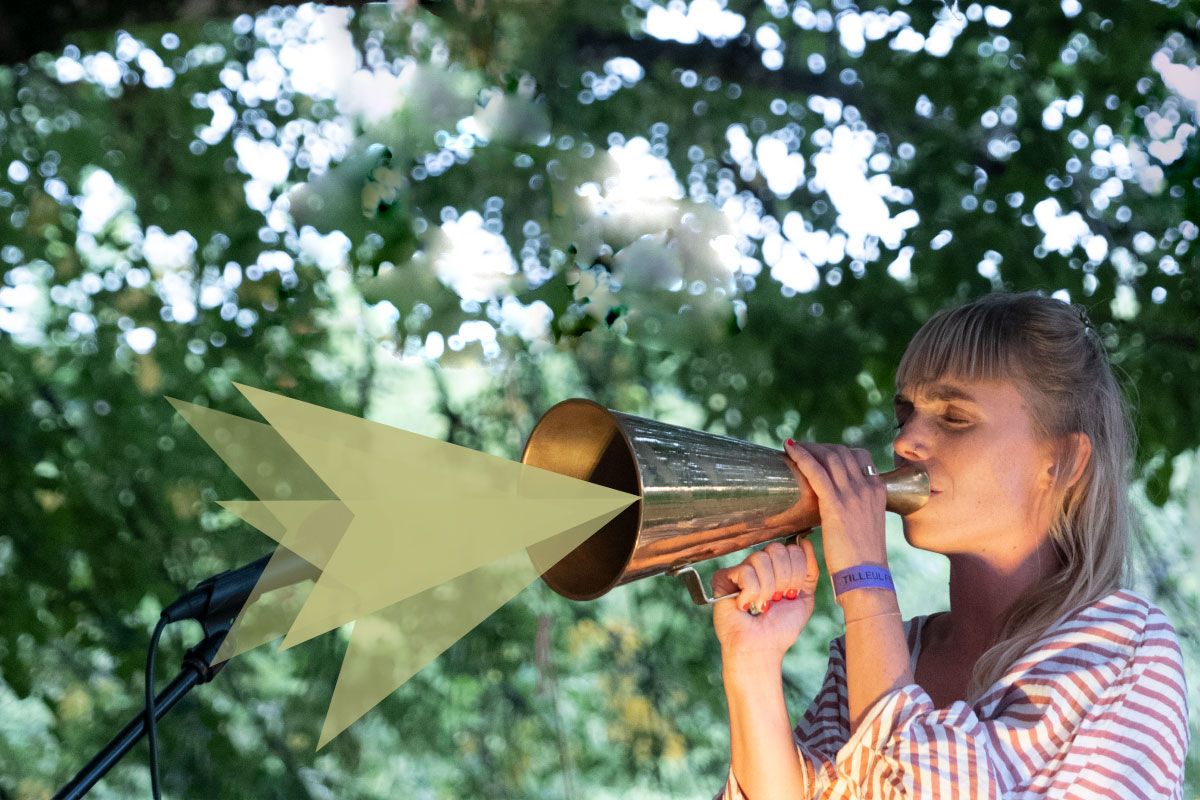 Photo © Séverine Gonzalez, 2022 - Pauline Maurer de « inTrees. » sous le tilleul - Graphisme Sandra Binder